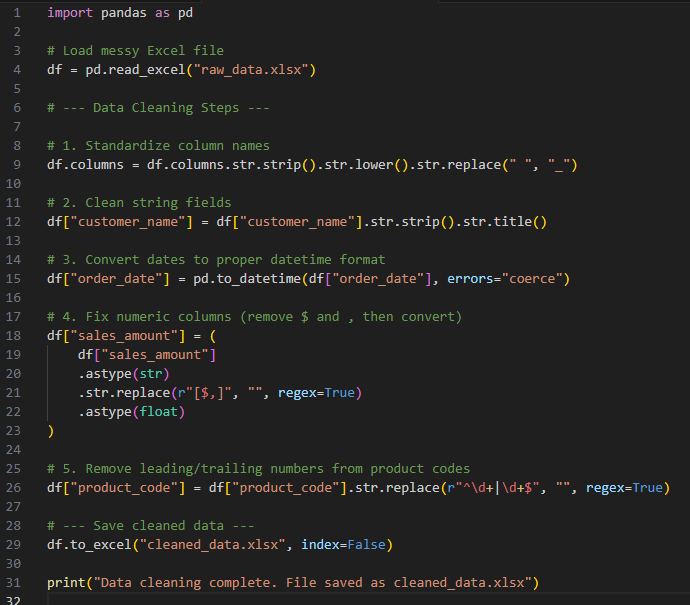 Excel is an excellent entry point into data cleaning — familiar, intuitive, and powerful in its own right. But when paired with Python automation, the process transforms from manual correction into a repeatable, scalable workflow.